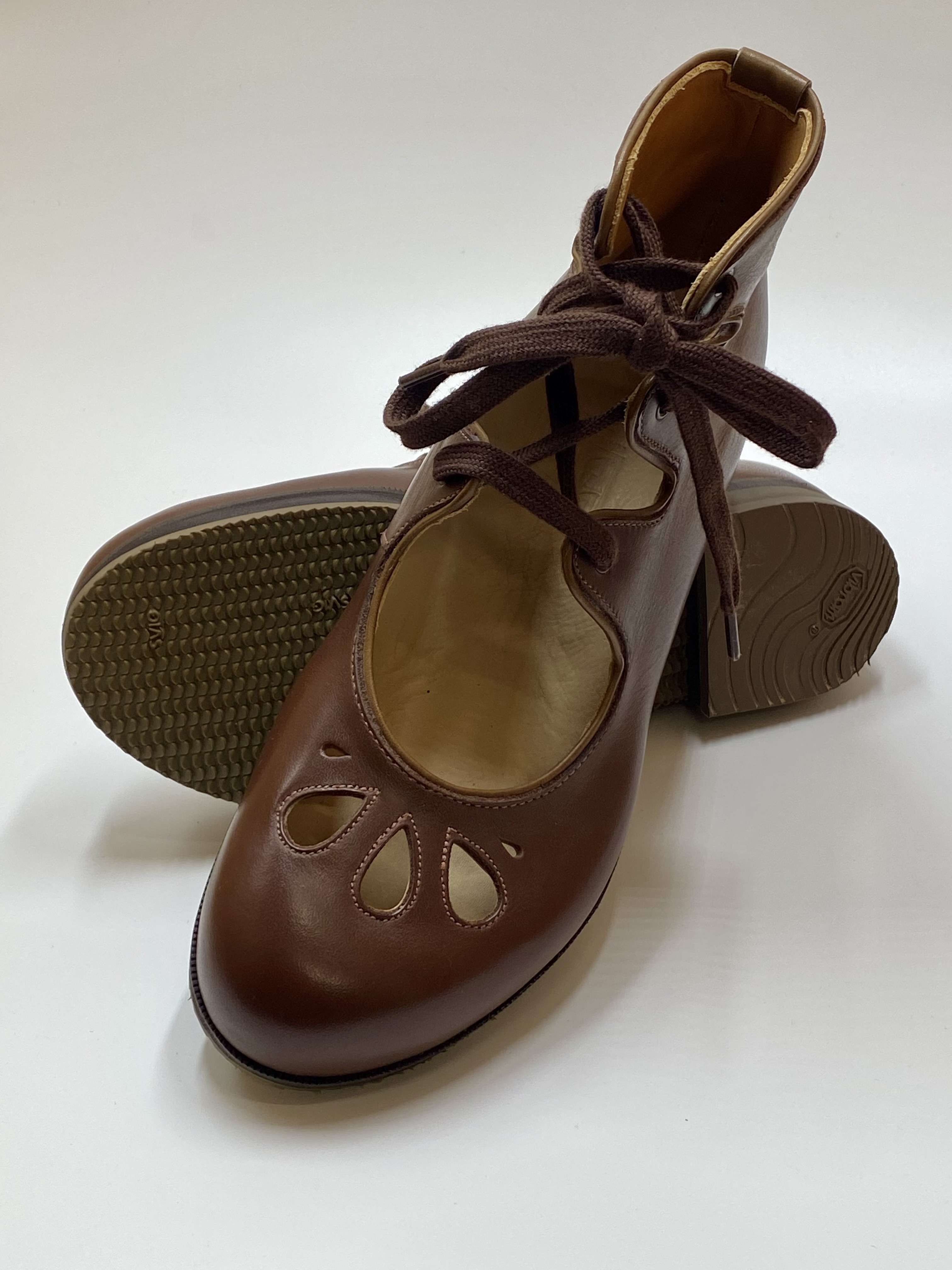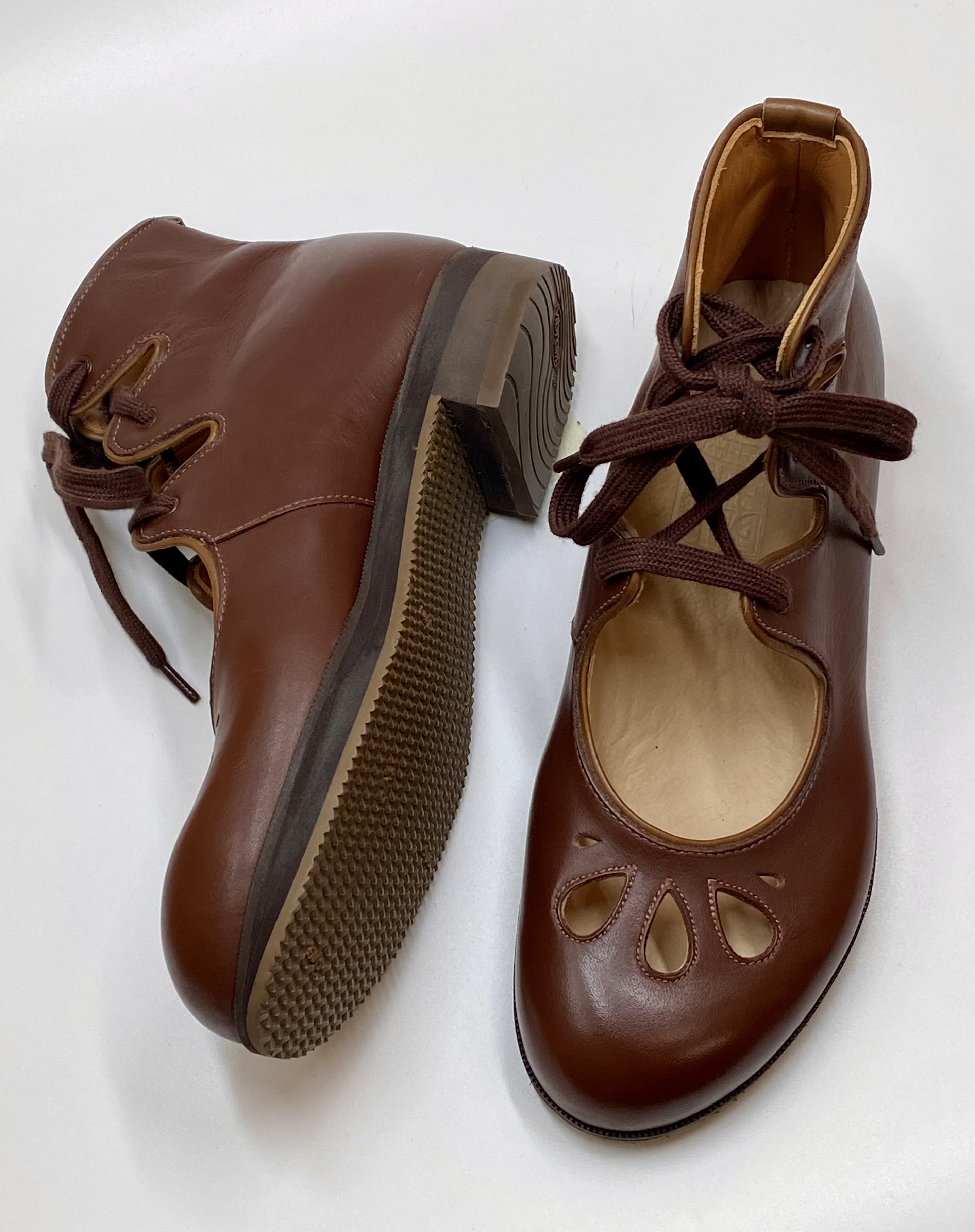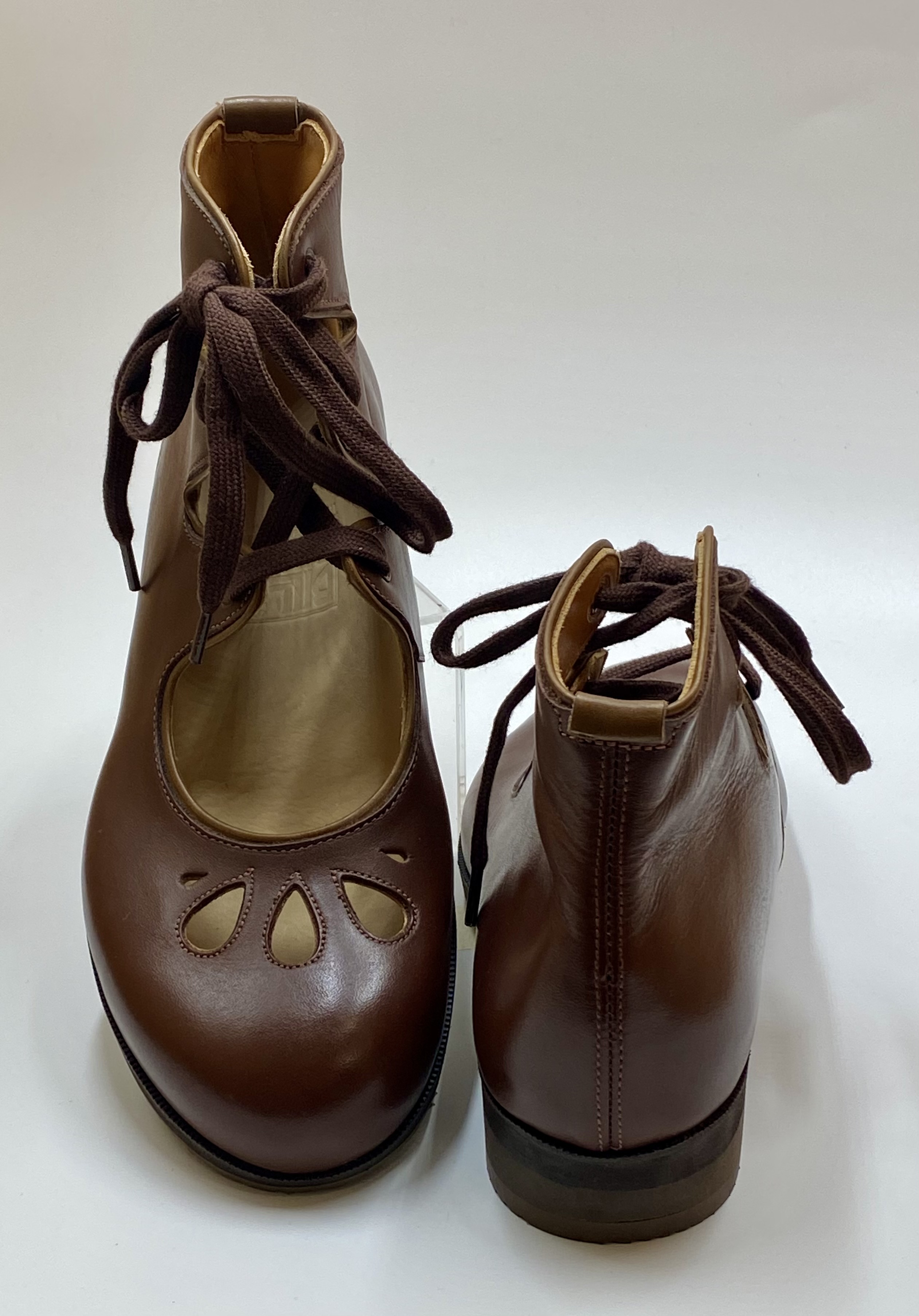 Beautifully crafted from rich brown leather, these mid-ankle lace-up boots offer grounded elegance for every day. The upper features a charming trio of teardrop cut-outs at the toe, offering a subtle, breathable openness while nodding to vintage floral and folk design. The thoughtful detailing and a secure lace system is designed not just to look good — but to keep you steady on your feet, wherever the day takes you.