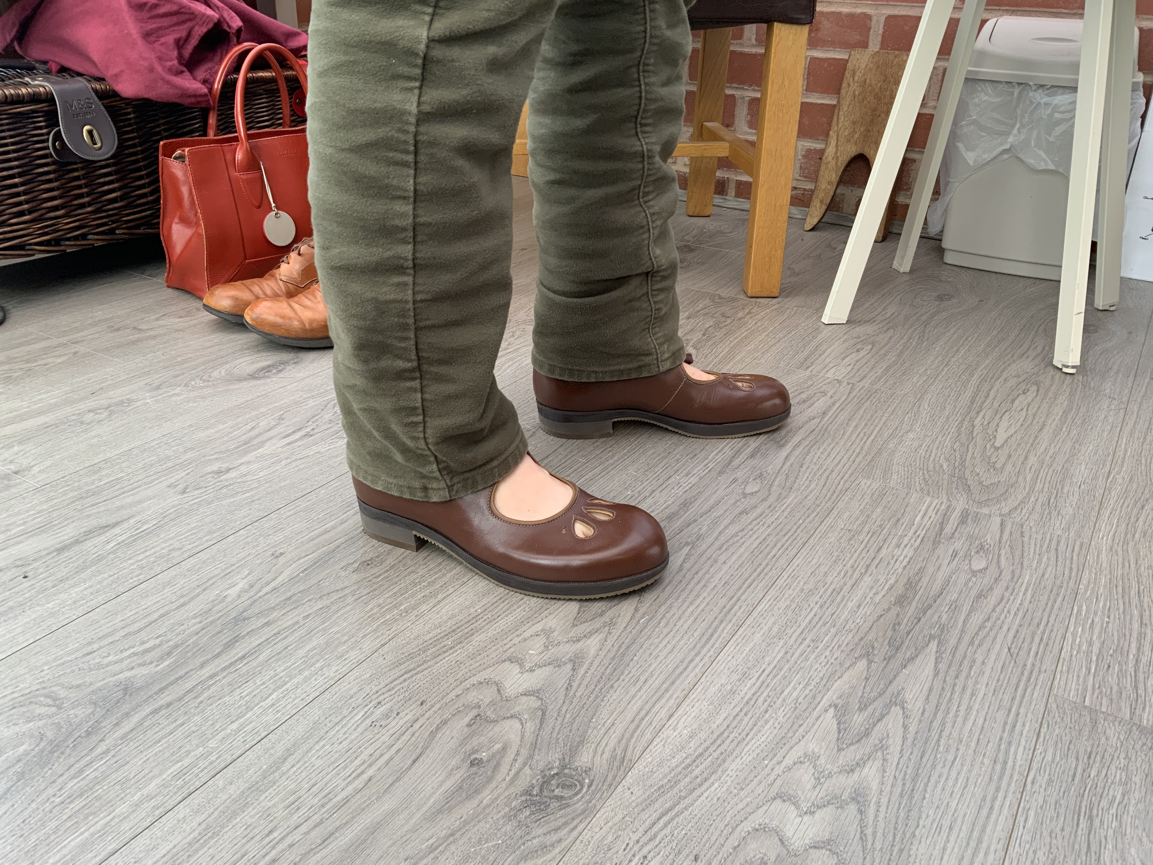 Cut from Natural, Breathable Leather. Flexible yet sturdy, allowing movement while keeping the foot securely contained with padding underfoot.